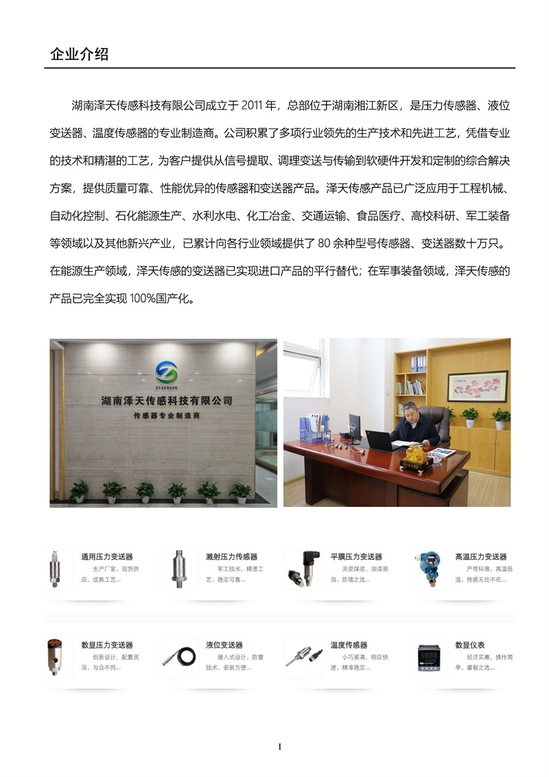 湖南澤天傳感--產(chǎn)品宣傳手冊202401版
