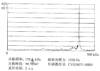 由于管腔效應(yīng)的影響太大,有時為了克服工藝難點,甚至不惜適當(dāng)加大膜片半徑以保證傳感器能齊平封裝。筆者用于某空氣動力學(xué)研究及某化爆自由場測試的動態(tài)壓力傳感器即采用了這種設(shè)計原則。其0~0.4MPa,……0~4MPa的多種動壓傳感器,固有頻率在100~270kHz。用正弦波動態(tài)實校,在5kHz范圍內(nèi),幾乎無動態(tài)附加誤差。圖1即為一只量程1 MPa的動態(tài)壓力傳感器用激波管實驗得出的幅頻特性曲線,其第一諧頻為170kHz,動態(tài)誤差很小的可用帶寬在50kHz,上升時間為0.8μs。